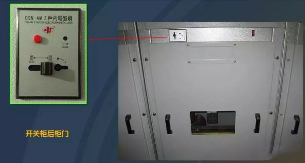 (4)接地開關與電纜室蓋板的聯鎖:接地開關只有在開關柜的下門關閉或接地開關處于關閉狀態時電纜室后密封板關閉時,接地開關才能打開。