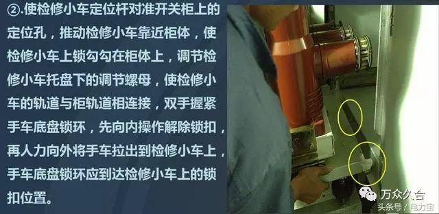 2、將斷路器從檢修車推到開關柜手車室內操作