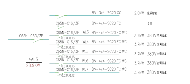C65n-C16/3pw l5bv-4 * 4-sc 20 fcw c 3.7 kw380 v空調插座: